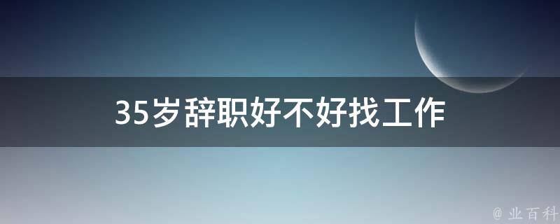 视情况而定。35岁辞职后是否好找工作取决于个人的情况。通过评估自己的技能和经验、了解市场需求、建立人脉、制作有效的简历、积极寻找机会以及保持积极心态,可以增加自己在求职市场上的竞争力,找到适合自己的工作。