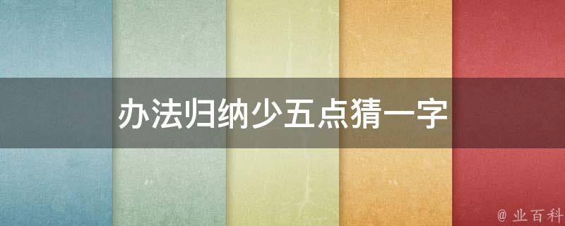 办法归纳少五点猜一字是劫。其中办少两点是力,法少三点是去,去和力可以组成劫字。劫本义指以强力使对方欲去而不得。《说文》:劫,人欲去,以力胁止,曰劫。又有《韵会》劫劫,犹汲汲也。
