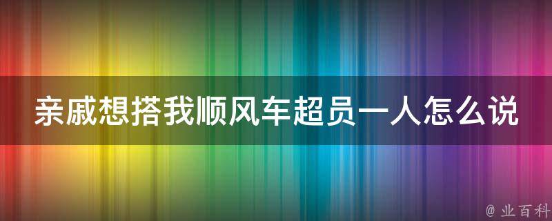 1、坦诚相告:告诉亲戚,车辆已经满员,无法再容纳更多的人。解释说,超员不仅违反交通法规,而且可能会对其他乘客和自己的安全造成隐患。