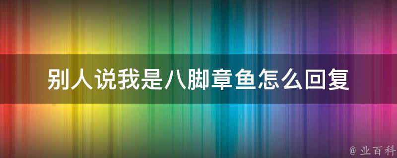 别人说我是八脚章鱼可以用幽默的方式回复,例如:哦,原来我是章鱼,那我得找机会变个身了!这样的回复可以缓解尴尬的气氛,同时也可以展示自己的自嘲能力。当然,也可以直接表达自己的不满或困惑,例如:我不太明白你的意思,能解释一下吗?这样的回复可以让你在表达自己的同时,也能让对方意识到他们的言语可能对你造成了伤害。