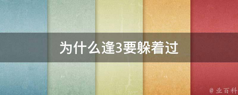 逢3躲着过的原因是出于一种民间信仰和迷信,认为逢农历三、九岁时,也就是所谓的坎儿年,若在这个时候过生日,那么未来会遭遇诸多磨难。为了消灾免祸,期望未来能够顺顺利利,很多人就会选择在逢三、九的生日时躲三避九,选择不出门,以此躲避可能出现的风险。