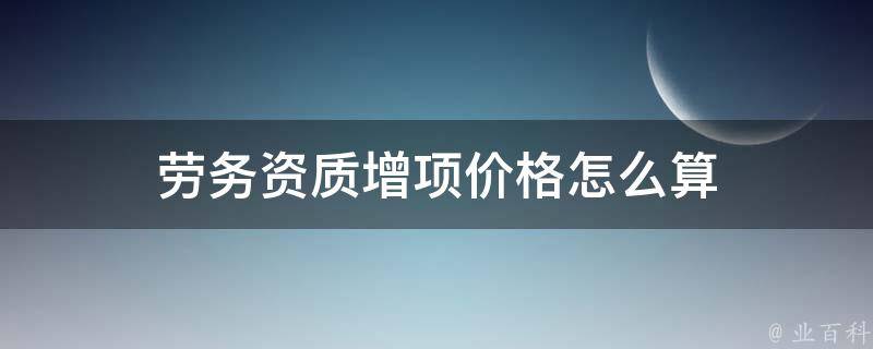 视情况而定。劳务资质增项的价格因地区和具体要求而异,无法给出具体的价格。一般来说,办理劳务资质增项需要支付一定的费用,包括人员费用、服务费用(代办费用)和其他方面的费用。建议咨询当地的建筑主管部门或专业的资质代办机构,以获取更准确的价格信息。