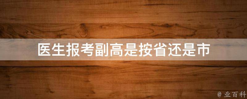 医生报考副高是按省。全国医学高级职称考试是由各个省份自行规定,是一个等级考试。副高是副高级技术职称的简称,医院、医学院校的副高即副主任医师、副教授等,位于次等,往上去就是主任医师、教授。