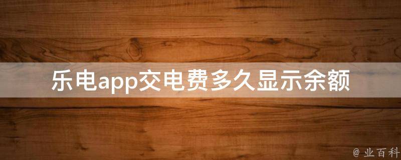 最佳答案乐电app交电费24小时后显示余额。现在线上电费充值之所以需要24小时才能够到账主要的原因还是官方充值机制的变革,因为市面上出现了很多电费慢充,这些电费慢充其实就是很多灰色产业弄出来的,所以,官方为了能够更好的打击这些产业,把充值电费的机制调整成为24小时到账。