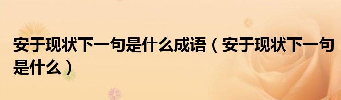大家好,我是小科,我来为大家解答以上问题。安于现状下一句是什么成语,安于现状下一句是什么很多人还不知道,现在让我们一起来看看吧!
