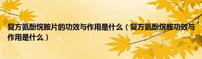 大家好,乐天来为大家解答以下的问题,复方氨酚烷胺片的功效与作用是什么,复方氨酚烷胺功效与作用是什么很多人还不知道,现在让我们一起来看看吧!