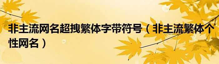 1、 现在还有很多人在取网名的时候会选择非主流风格,而繁体字是非主流网名的一个重要元素,取一个繁体字网名不仅让人觉得有个性,而且其文字也会让人感觉与众不同,那么个性化突出的繁体字网名有哪些呢?