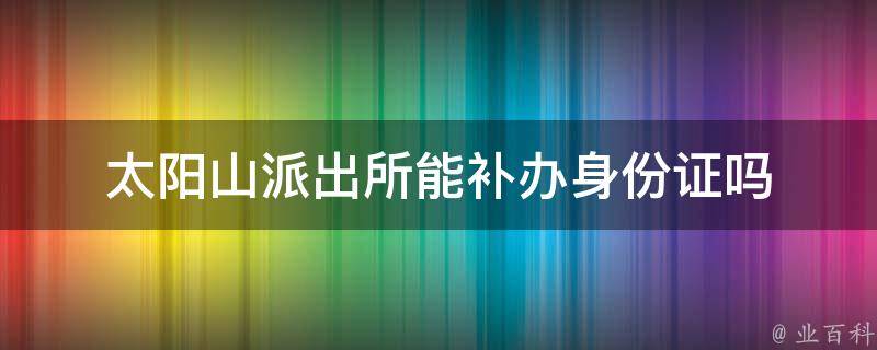 太阳山派出所能补办身份证,本人应携带户口簿到户籍所在地的公安分局户政大厅,进行丢失补证的申报。民警对户口簿、本人、电脑户籍上的信息核对后,对当事人进行信息采集和证件办理。需要注意的是:由于拍摄背景是浅颜色,所以应当穿着深色的衣服,露出五官。