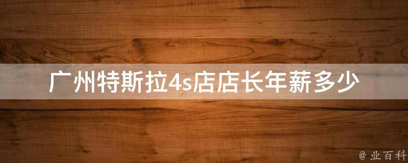 广州特斯拉4s店店长年薪在20-50万。店长具体的薪酬会根据店铺的销售额、利润贡献、管理经验、个人能力和市场薪资水平等因素综合确定。特斯拉店长的职责是通过客户服务、产品知识讲解和推广来驱动业务发展,提升销售成绩;落实运营政策和流程来满足客户需求,同时帮助新能源汽车品牌达到销售目标;负责面试和候选人招聘,选择合适的人才帮助达成体验店的销售和交付目标;管理、培训和发展员工,帮助他们持续达成公司业绩标准等。