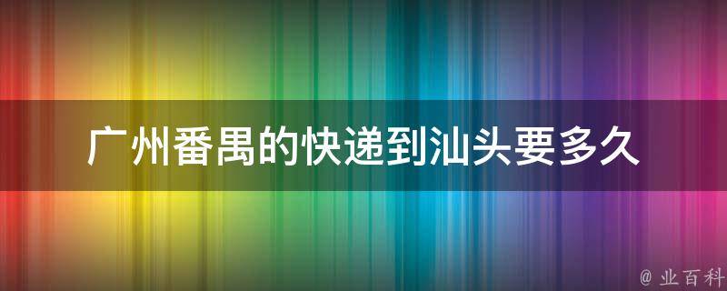 广州番禺的快递到汕头通常需要2-3天。影响快递到达时间的因素有运输距离、运输方式、运输时间等,具体时间还要根据快递公司派送的快慢决定。如果快递没有按时到达,可以上网查询或是打电话催促一下快递公司,顺便跟踪一下货物情况。