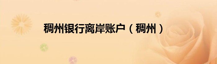 稠州银行离岸账户(稠州)
