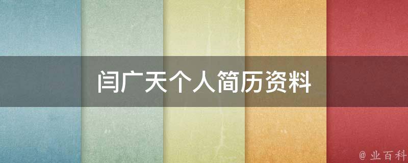 闫广天,男,中共党员。曾任中铁十八局集团四公司执行董事、总经理,中铁十八局集团副总经理(主持经理层工作),中铁十八局集团有限公司党委副书记、总经理。现任中铁十八局集团有限公司党委书记、董事长、总经理。
