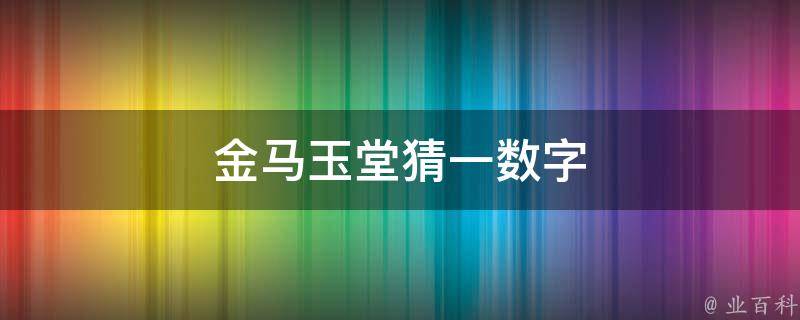 金马玉堂猜一数字是27。因为金马玉堂字的笔画分别是8、3、5、11,加起来刚好27,所以,金马玉堂猜一数字是27。在数字谐音中,2代表爱、两人世界;7代表请、亲、起、气。另外,0代表圆满、完美、无尽;1代表唯一、你、起点。