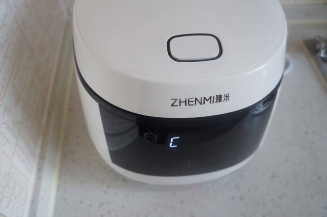 3、将大米和藜麦淘洗干净,放到脱糖电饭煲的小箅子上。