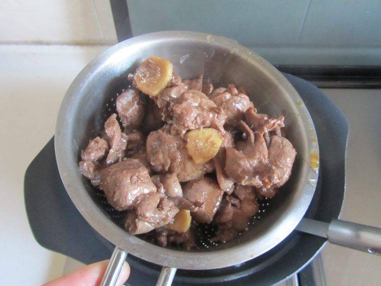 12、小火慢慢煸炒,再加入少量的白酒和酱油,继续煸炒。