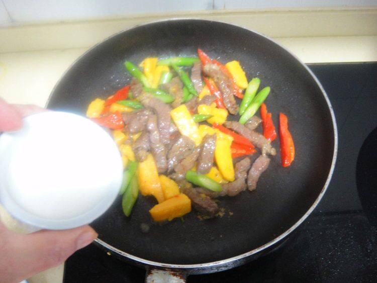 1、食材准备:牛排150克、芒果200克、芦笋2根、橄榄油、盐、彩椒、水淀粉各适量。