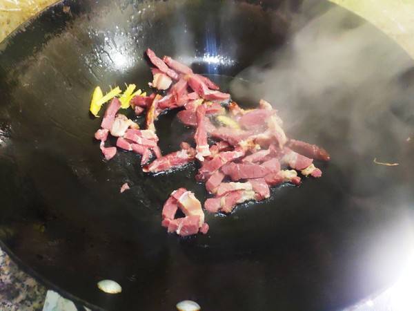 7、倒入适量料酒,继续翻炒至马肉熟透。