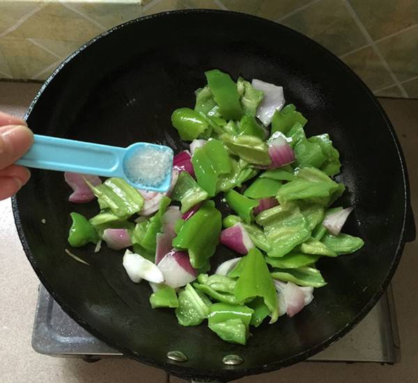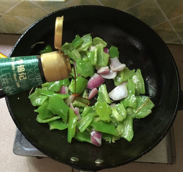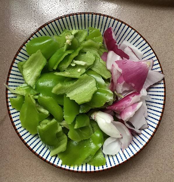 用料:牛里脊肉220克、绿辣椒200克、洋葱60克、生抽酱油10毫升、蒸鱼豉油10毫升、料酒10毫升、生粉2克、生姜5克、精盐3克、原味鲜1克、食用油30毫升。