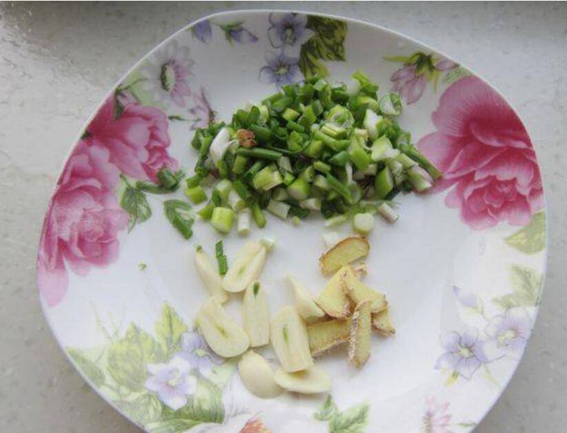 2、把葱洗净切段,姜蒜洗净去皮切片,香菜洗净切末,辣皮子用水泡泡切段。