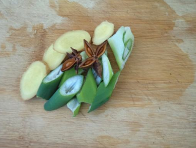 葱姜洗干净切块,备好大料、干红椒;