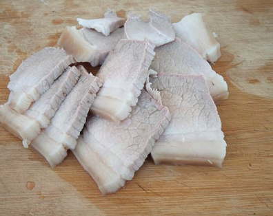 白肉切成稍微厚些的大片,已除臊味。