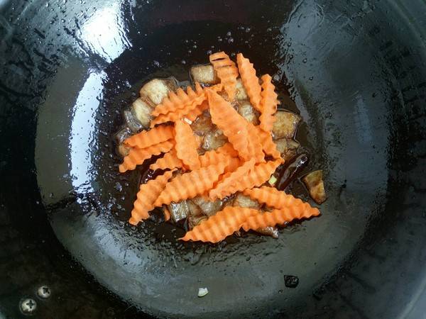 2、红萝卜洗净去皮,切成片。葱姜蒜均切粒。