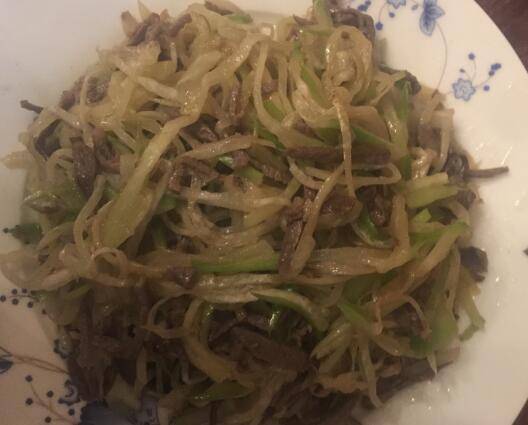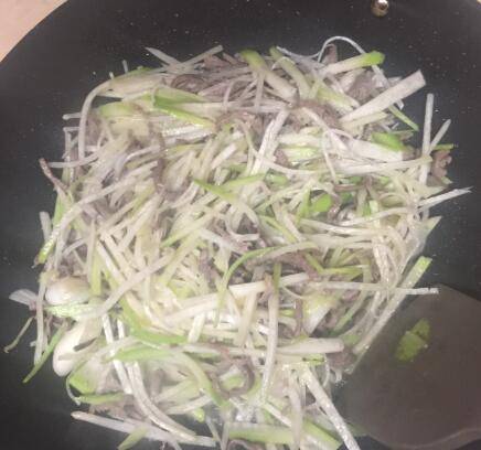 1、牛肉或者猪肉切成丝备用,青萝卜切丝备用。