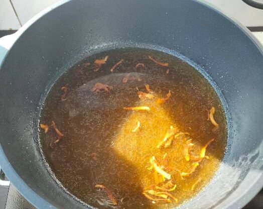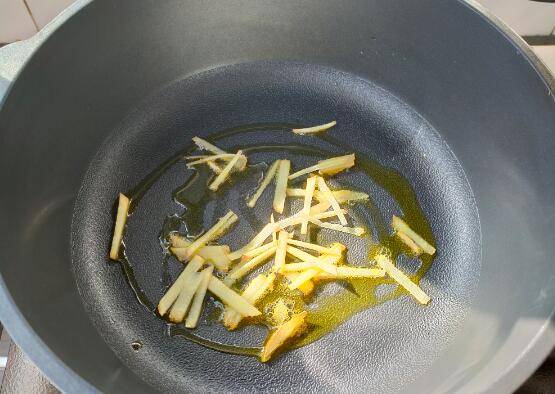 6、接着放入葱花、胡萝卜丝,炖煮1-2分钟。