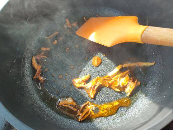 9、淀粉用清水搅拌均匀,淋入锅内。