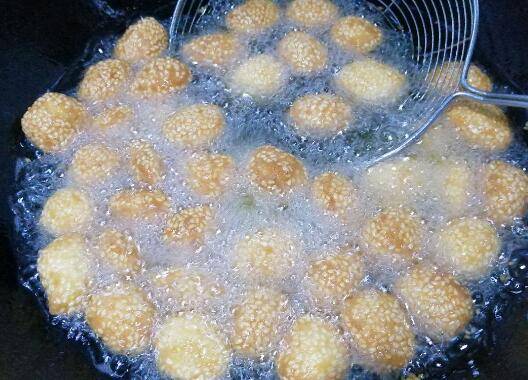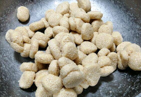 用料:低筋面粉300g、鸡蛋1个、白糖50g、植物油30g、泡打粉1.5g、食用碱面1g、白芝麻适量水80g、盐1g、小苏打1.5g。