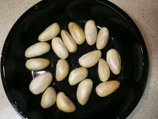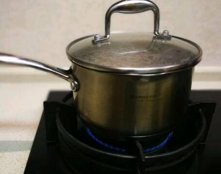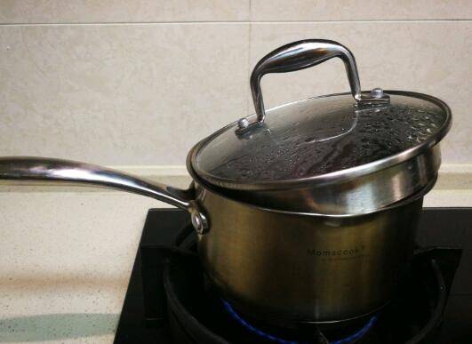 2、奶锅内加适量清水,放入菠萝蜜核。