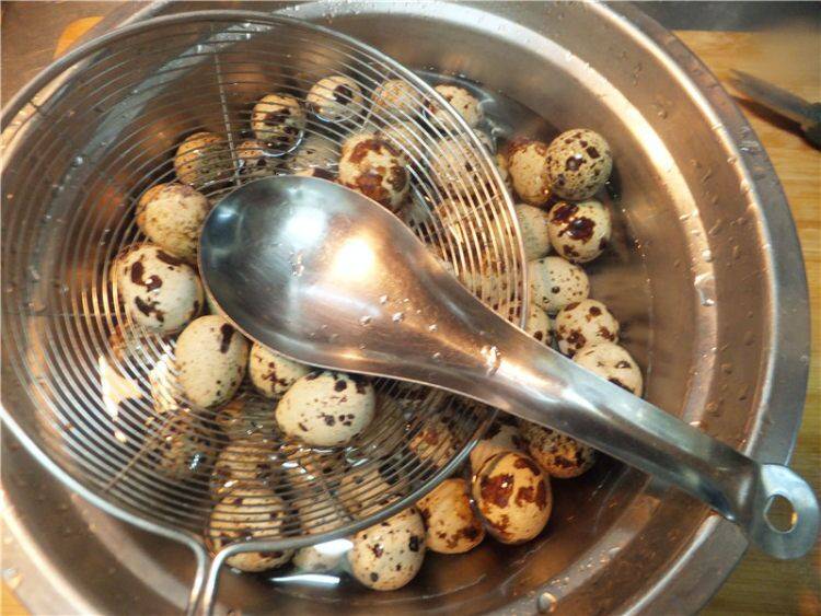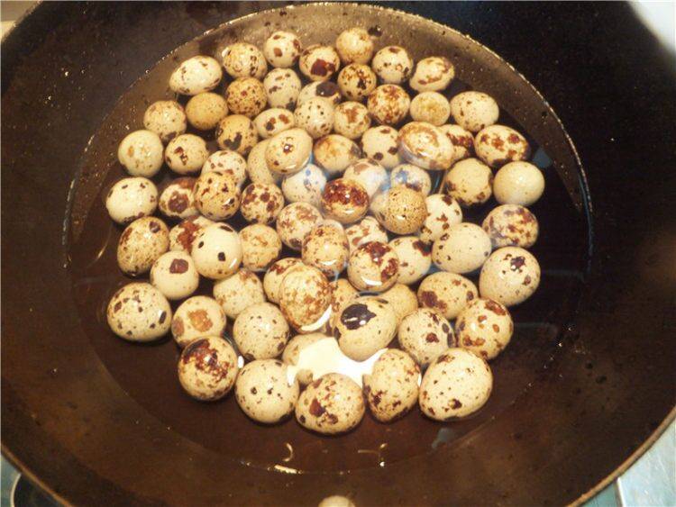 5、把鹌鹑蛋放入。