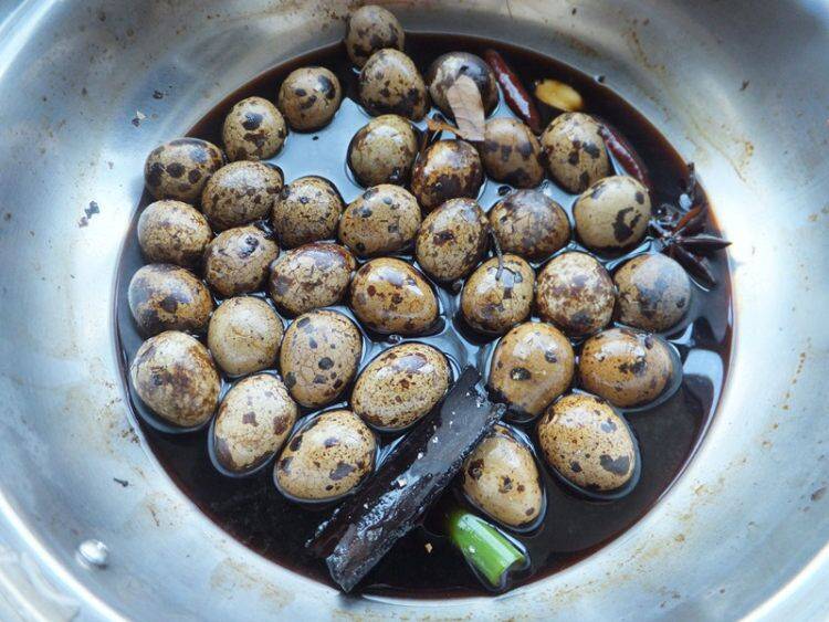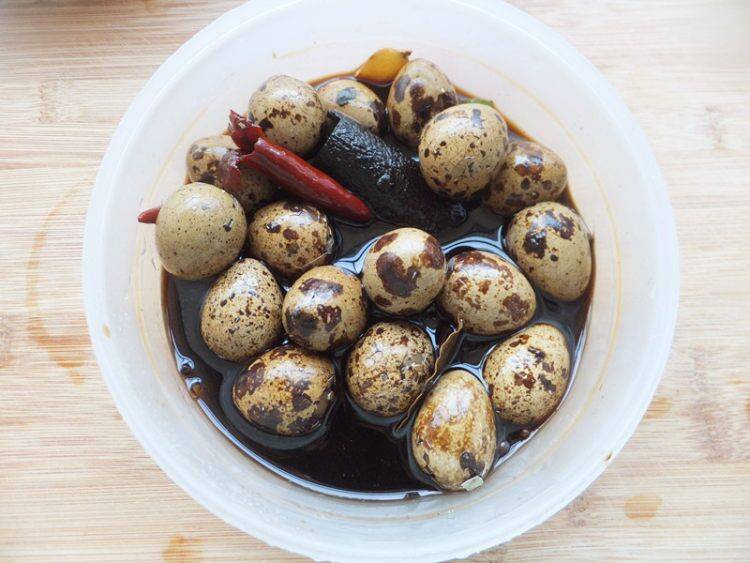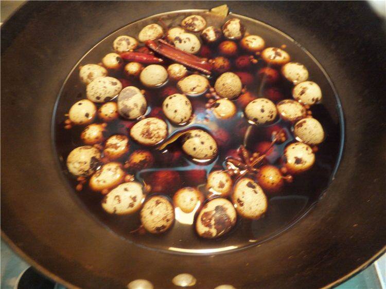 最佳答案1、食材准备:鹌鹑蛋500克、盐、八角、葱、姜、花椒、桂皮、香叶、老抽、糖、白酒各适量。2、鹌鹑蛋冲洗干净,锅内加水放入鹌鹑蛋,烧开后煮5分钟就可以煮熟。3、捞出过冷水,用勺子把蛋皮拍碎。4、锅内加适量的水,加所有的调料煮10分钟。5、把鹌鹑蛋放入。6、继续煮10分钟,关火焖着。7、...