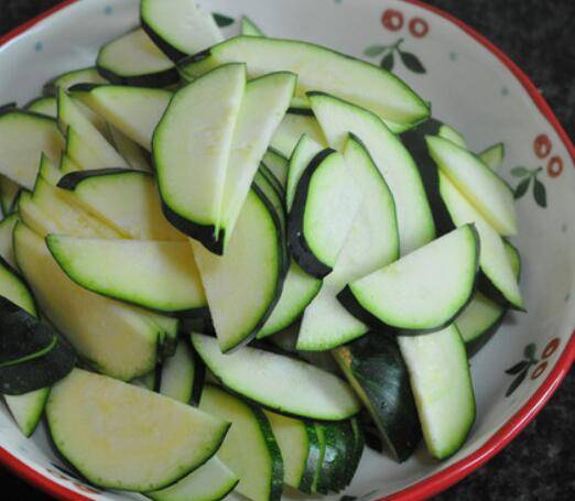 2.节瓜洗干净后,对半切开,再切成片状。