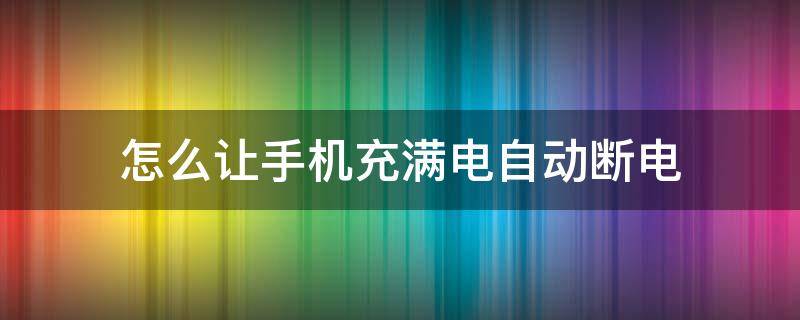 怎么让手机充满电自动断电