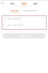 2、输入宽带业务开户时使用的身份证号码,并输入宽带所在的城市,完成登录操作。