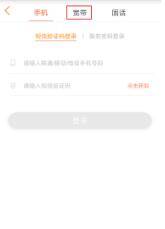 1、打开中国联通手机营业厅APP,在账号登录页面中,点击顶部“宽带”选项卡。