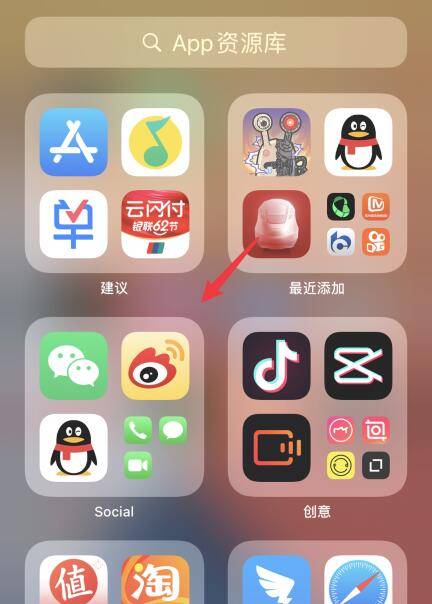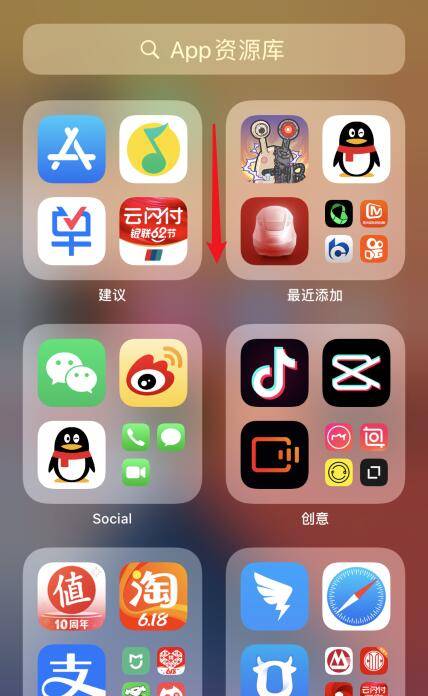 然后再向左滑动屏幕一次,就可以打开APP资源库了。
