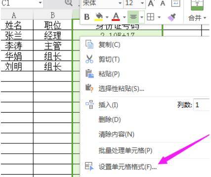 3、在选中位置单击鼠标右键,选中对话框中的“设置单元格格式”;