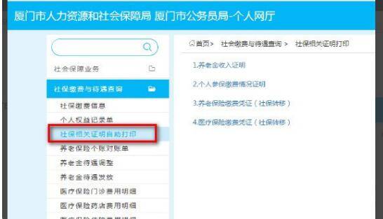 4、在打开的页面选择社保相关证明自助打印。