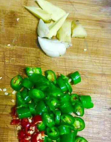 小青椒、辣椒切碎和姜蒜片备用,锅里烧开水,放平菇焯烫2分钟。