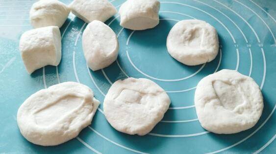 6、发酵后的面团取出直接搓成长条,切成等量的剂子。