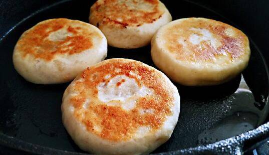 8、锅中刷一层油,把包子直接按扁进锅中,盖上锅盖小火烙。