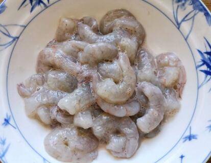 用厨房纸将水分吸干,将处理好的虾仁加一点淀粉和一点料酒抓拌均匀至上浆。