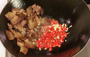 1、准备材料:熟腊肉200克、韭菜花300克、朝天椒30克、大蒜10克、盐、味精、料酒各适量。