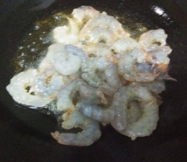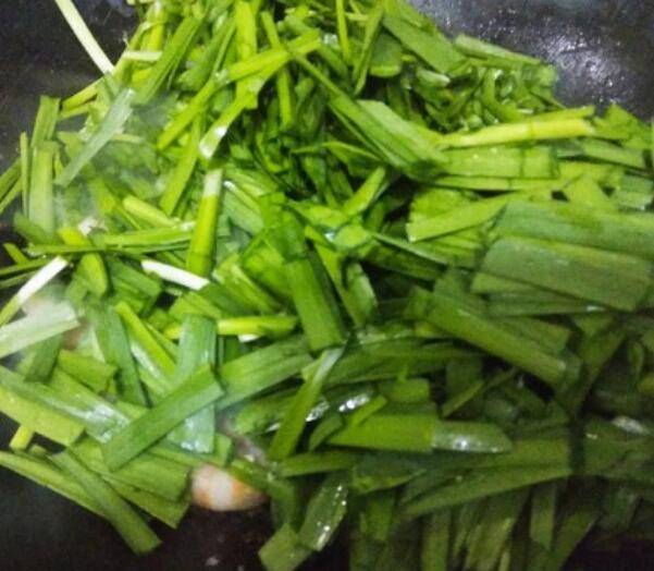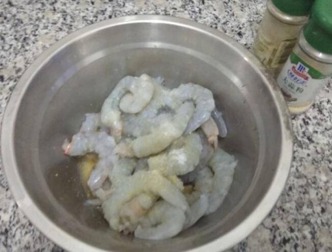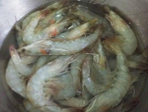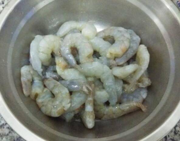 用料:大虾400克、韭菜400克、精盐少许、味精少许、黄酒半勺、大蒜粉少许、胡椒粉少许。