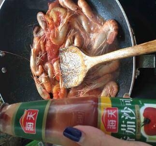 主料:虾鸡尾虾40只。辅料:番茄1个、番茄酱1勺、玉米油少许、海盐少许。