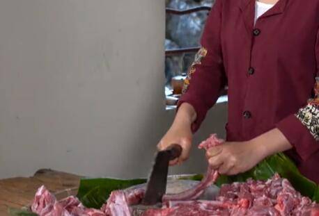 4、用力剁成小块,力量大一点,最好能一刀两断。