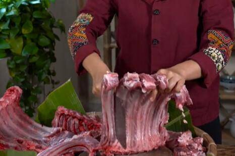 1、先沿着骨骼中间的肉,剁出一个开度口。