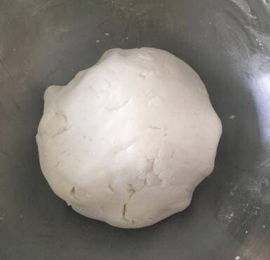 放入糖水揉好,余10g水看着加,直到糯米团粘合在一起,把糯米粉粘干净。盖上保鲜膜静置15分钟。